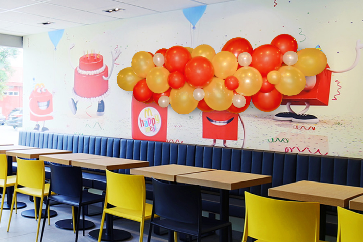 Options for Add-on Balloon decorations may differ between various McDonald’s Party rooms, while stocks last, visuals are for illustration only.