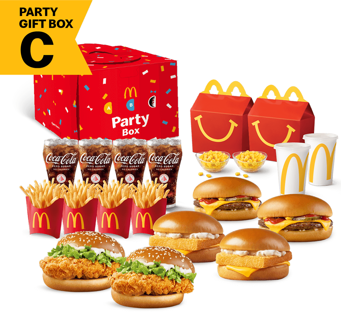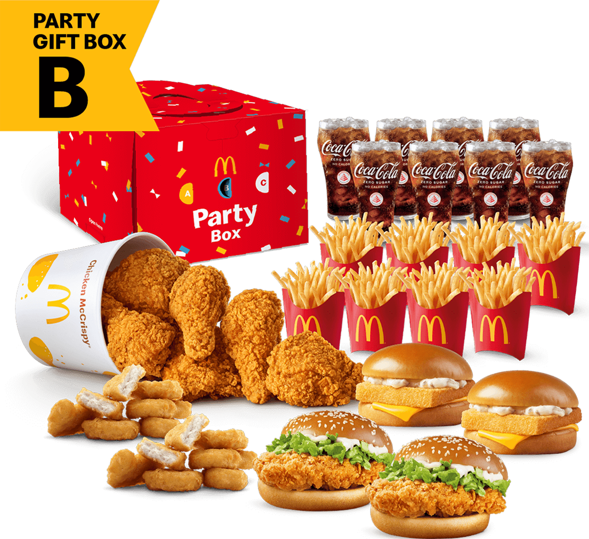 Party orders are only available via McDelivery after breakfast hours and while stocks last. Chicken McCrispy® is not available at McDonald’s Shell Tampines, McDonald’s Shell Hougang, McDonald’s Shell Havelock, McDonald’s Clementi Avenue 3, McDonald’s Parklane and McDonald’s Tampines Kiosk.
